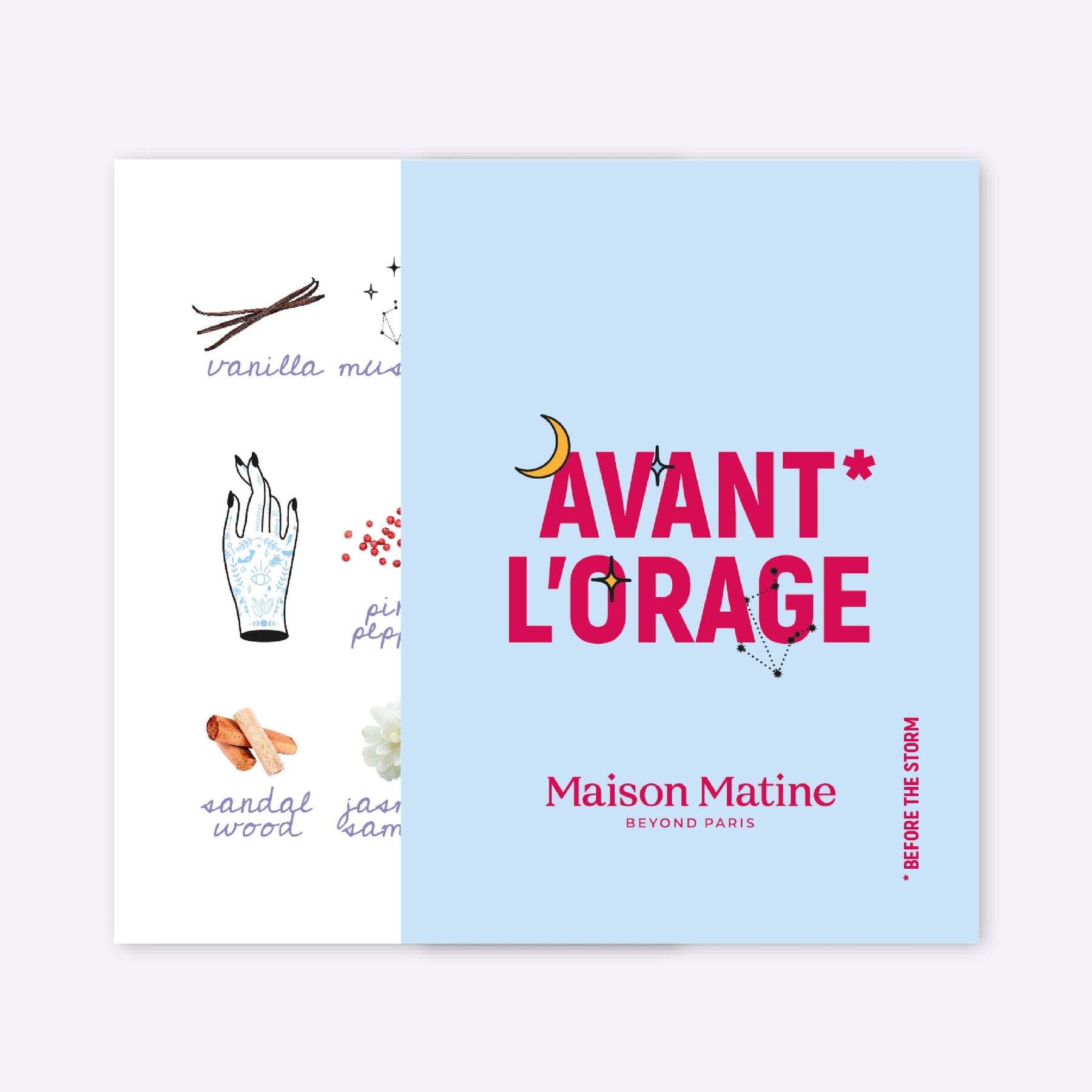 Unisexe 🖤🤍, Avant l’Orage est un instrument d’émotions fortes : le symbole du calme avant la tempête. Une fragrance douce et réconfortante, à la fois électrique et spirituelle.