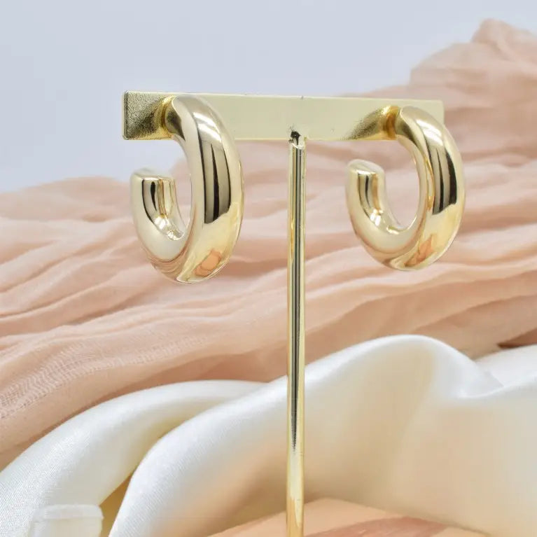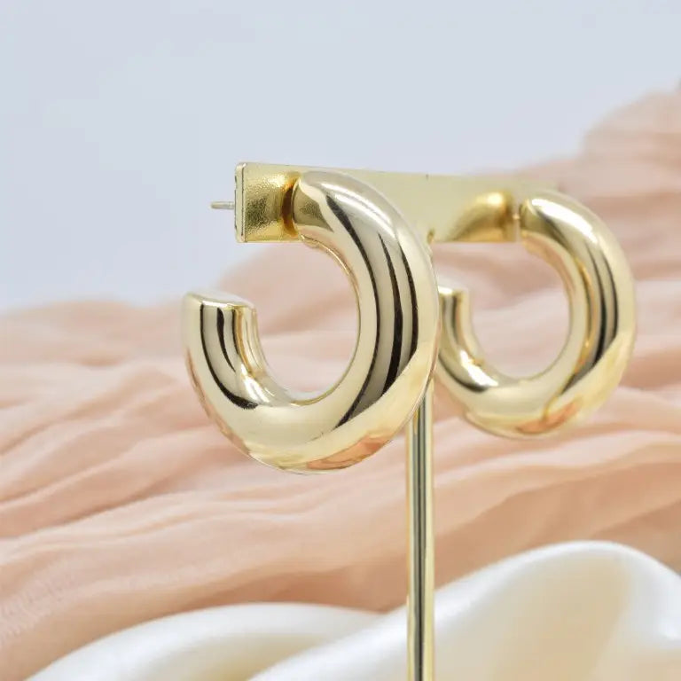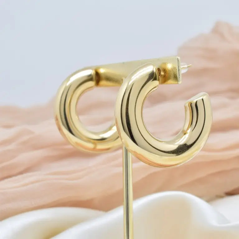 Boucles d'oreilles créoles creuses à l’intérieur en acier inoxydable doré.