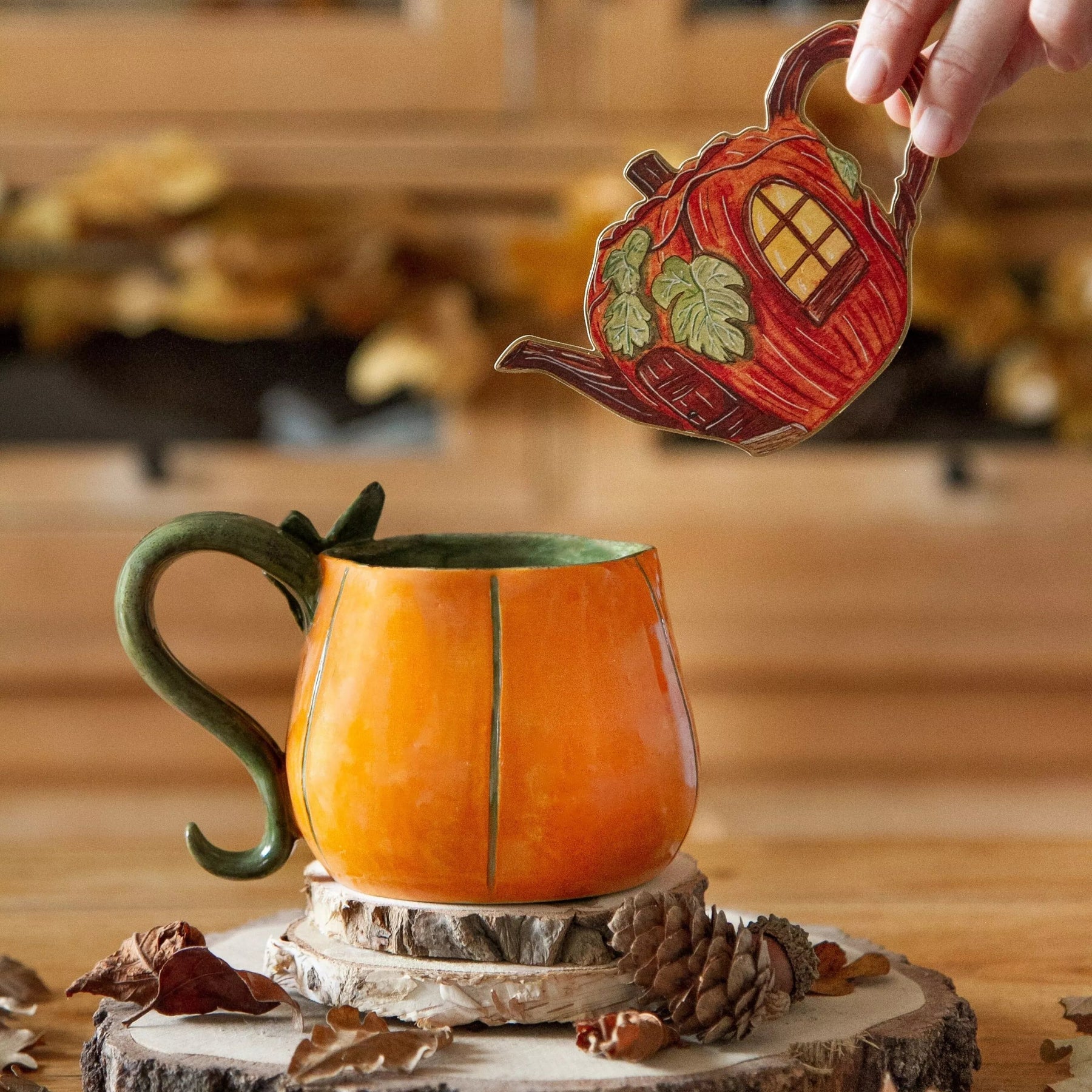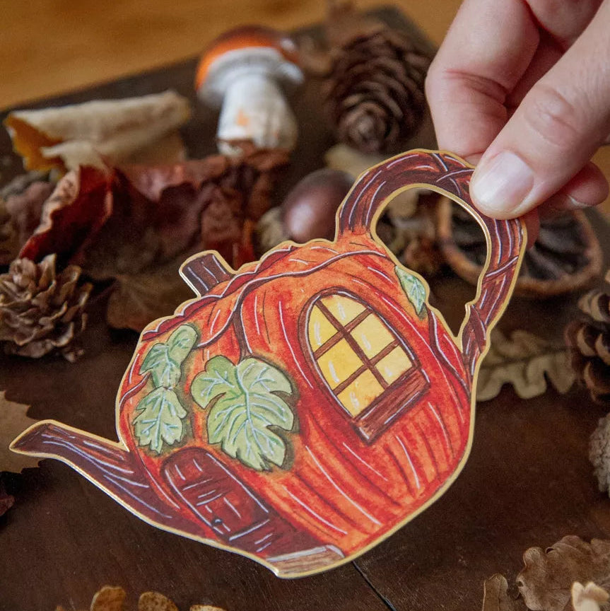 Découvrez la carte théière d'automne ! Un joyeux petit cottage de saison où il fait bon vivre et boire le thé !